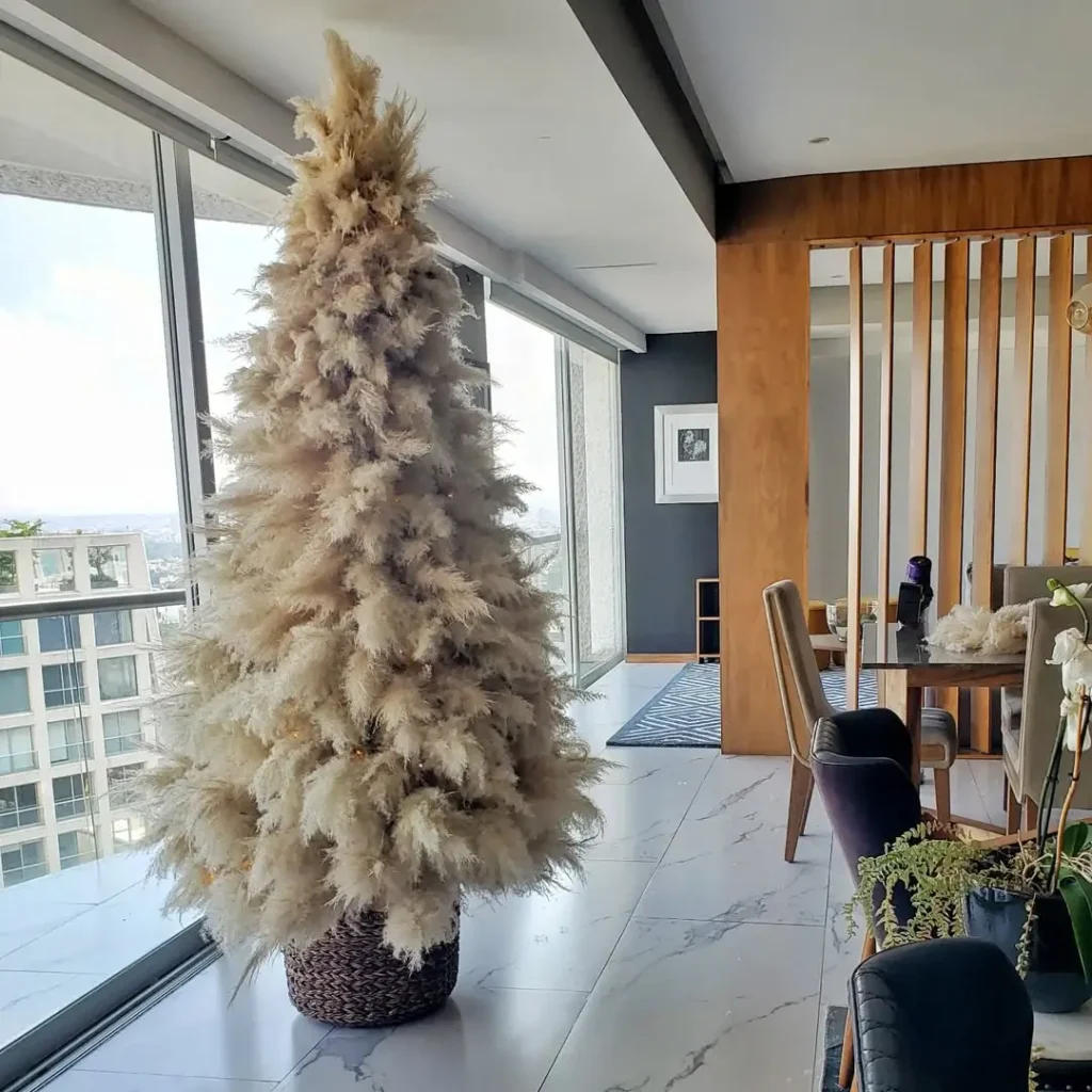 Okay, I know this one might sound unconventional, but stick with me because pampas grass as a Christmas tree is genius.