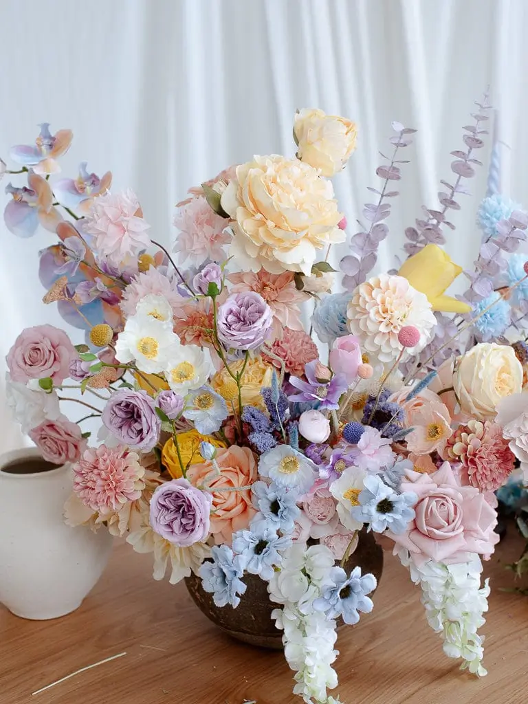 Choose soft pastel blooms or green leaves to keep the look fresh and cohesive.